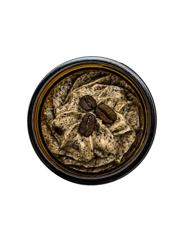 Step 1: Coffee Whipped Body Scrub Awaken your senses and smooth your skin with our invigorating coffee scrub that comes in an 1oz glass vessel, crafted to exfoliate, brighten, and leave you feeling silky soft. The gentle aroma of freshly brewed coffee sets the perfect base for what’s to come.